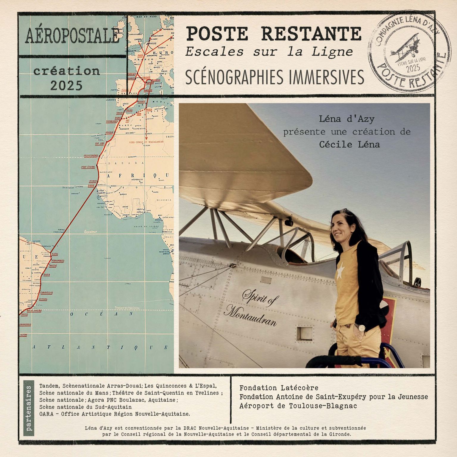 Plus qu’un spectacle, Poste Restante, Escales sur la Ligne est une invitation au rêve et à la mémoire. En revisitant les traces de ces aventuriers du ciel, cette création nous rappelle la beauté et la fragilité du monde, à l’image des réflexions de Saint Exupéry sur la condition humaine.